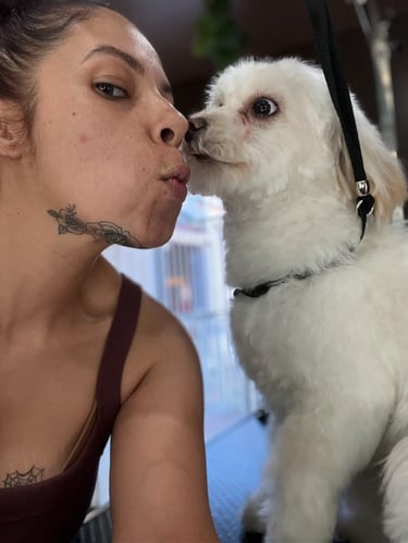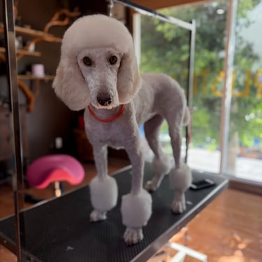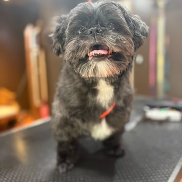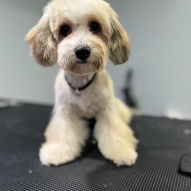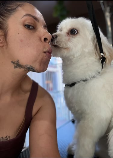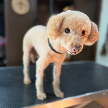 When Daisy first arrived over a year ago she had clear sign of anxiety and a fight or flight with a good bite. We began collaborating with her family and Veterinarian to see what medication would fit Daisy best. At first, it was the usual combination of Gabapentin and Trazidone. We soon realized she may need an everyday medication and she was started on Prozac. As a rescue, we do not know her past, but her body language speaks for itself. Now one year and 6 months later, Daisy no longer requires any Gabapentin or Trazidone for her services. Although, Prozac is still a part of her daily life, we can get her groomed completely and safely without the fear she exhibited in the beginning.